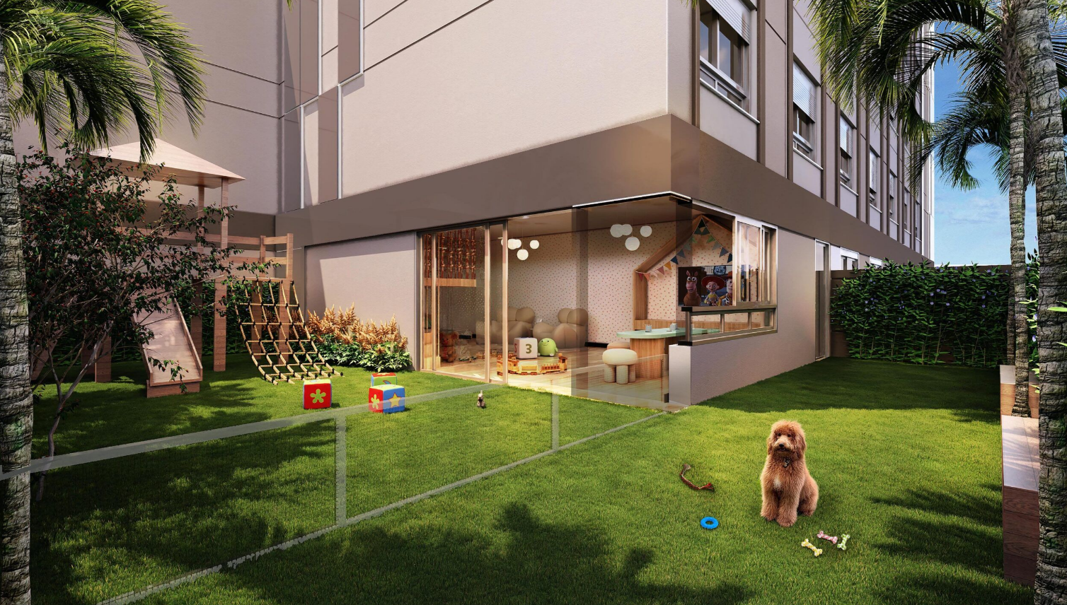Desenvolvido para um público exigente, o empreendimento alia padrão construtivo elevado a um programa de lazer completo. O conjunto contempla piscina com raia de 20 metros, quadra de tênis em saibro — diferencial raro em empreendimentos verticais —, fitness center equipado, spa, salão de festas, brinquedoteca, playground e espaços de convivência que reforçam a proposta de condomínio com estrutura de clube. As unidades dispõem de até três vagas de garagem, ampliando a funcionalidade e atendendo ao perfil familiar.